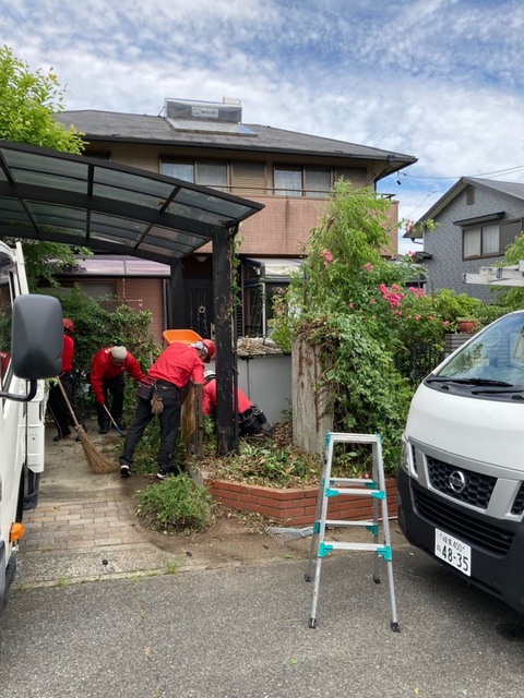 おうち周りの木が伸びてしまい、カーポートにもかぶさるような状態で